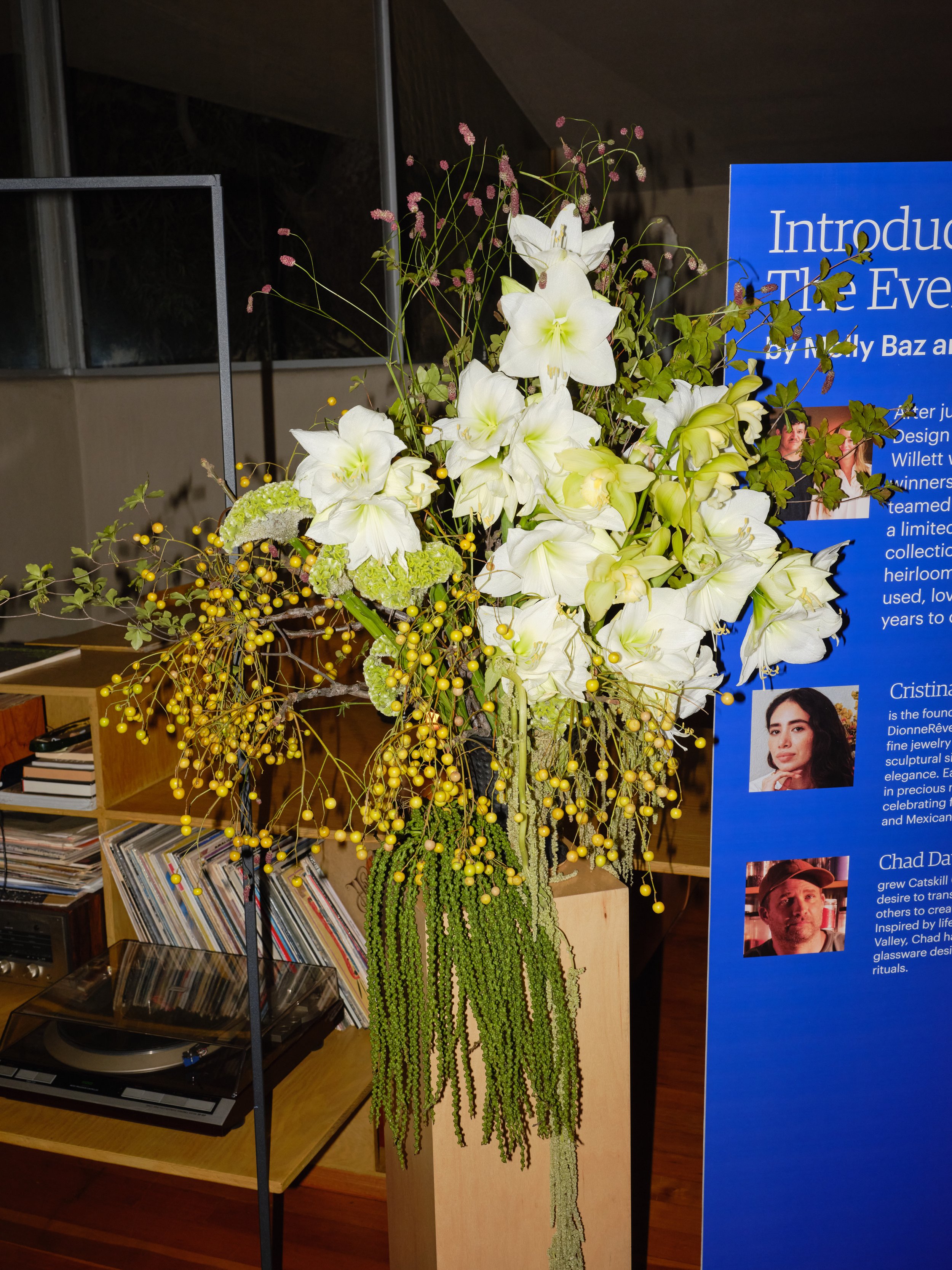 Bold flowers and custom backdrops made for a bright and lively backdrop to some genuinely interesting and thought-provoking conversations that lasted into the night.